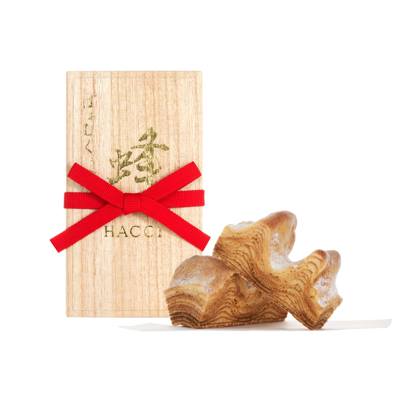 ラベンダーはちみつと発酵バターが上品に香るHACCIオリジナルのはちみつバウムクーヘン。じっくりと丁寧に焼き上げ、外はサクサク中はしっとりの食感がクセになるハードタイプに仕上げました。はちみつの優しい甘さが効いた味わいをぜひご賞味ください。
