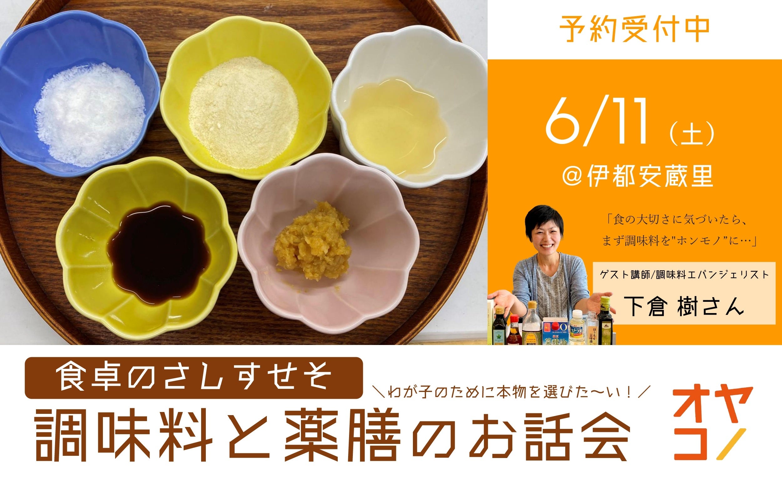 (下倉樹さんHPより)わが家のホンモノを楽しくご紹介される「健康的な調味料」のお話!