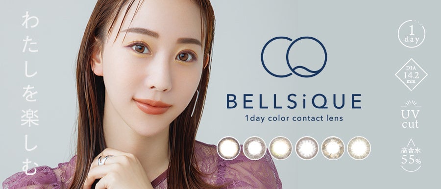 『BELLSiQUE』は、“わたしを楽しむ”がコンセプトの大人のためのカラコンブランドです。繊細なぼかしドットと透き通るような色味で作る水彩画のようなデザインが瞳に溶け込み、その人自身の魅力を自然に引き立たせるレンズラインナップ全6種類を展開しています。
