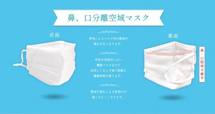 ・鼻と口の空域分離弁により、マスクによる熱気、蒸れ、息苦しさを軽減・解消