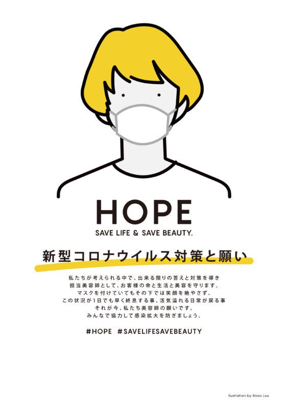 また、2020年にはコロナで営業自粛や制限を余儀なくなれた美容室からメッセージを届けるため、有志で「HOPE PROJECT」を立ち上げ、美容業界でも認知度の高い人気イラストレーターとともにPOPなどのツールを制作し無償で配布。大きな反響を呼びました。