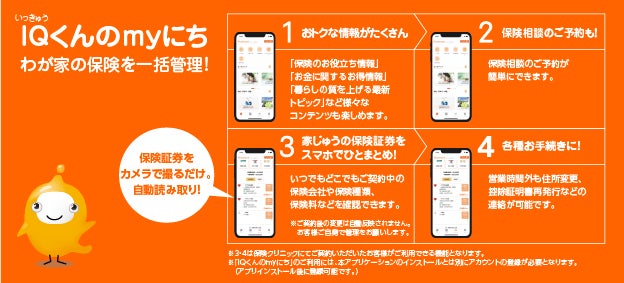 利用方法:①「保険フォルダ-IQくんのmyにち-」会員登録