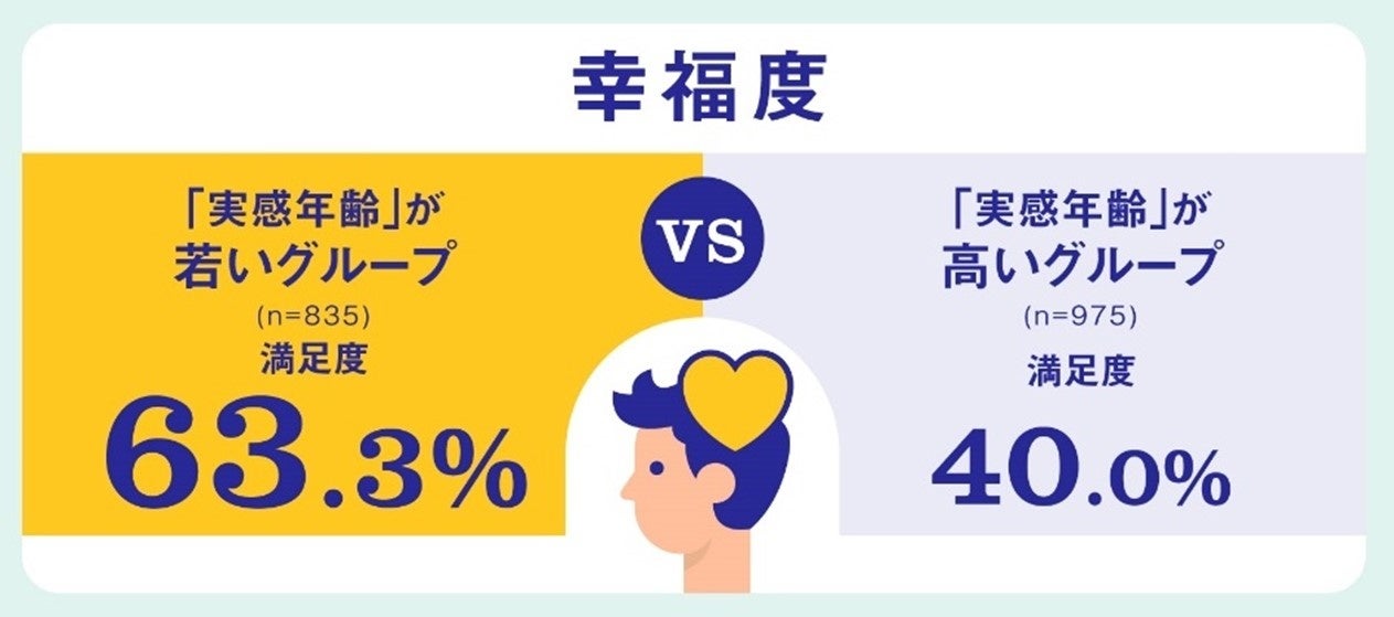 本調査では「実感年齢」が若いグループとそうでないグループそれぞれに対し「幸福度」について質問をしたところ、「実感年齢」の若いグループの方が生活全般に感じている「幸福度」が高いという結果になりました。「持続可能な開発ソリューションネットワークSDSN」が2022年3月に発表した「世界幸福度調査」※では、日本の幸福度は全世界で54位とG7加盟国の中では最も低い順位となっています。こうした世界との比較をみても、「幸福度」は今後の日本の社会課題の論点の一つとも考えられます。このような課題に対し、「実感年齢」という考え方は、日本人が幸福を感じ、いきいきとした生活を送るための一助になるとも考えられるのではないでしょうか。