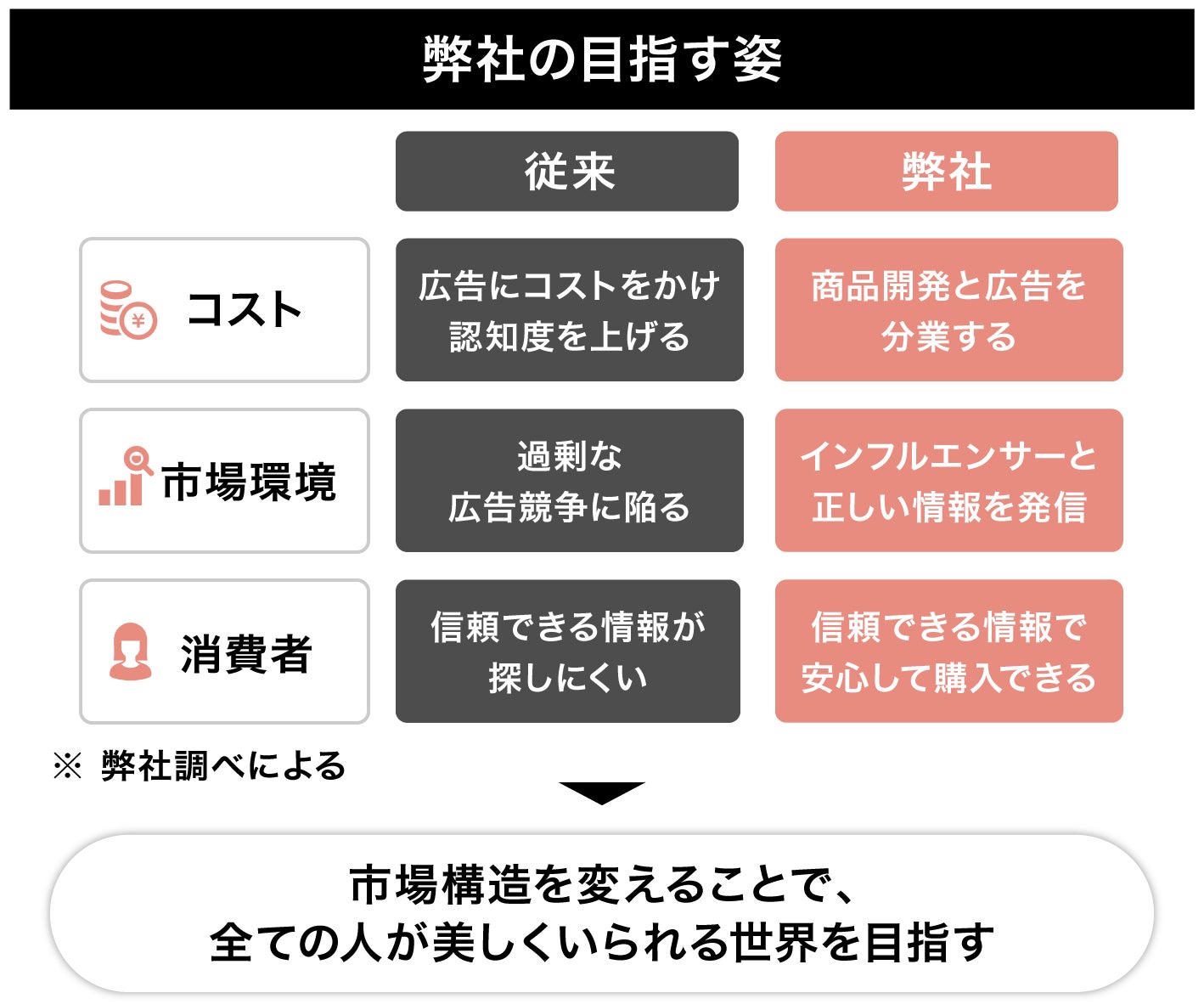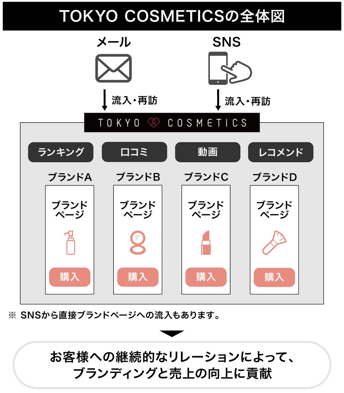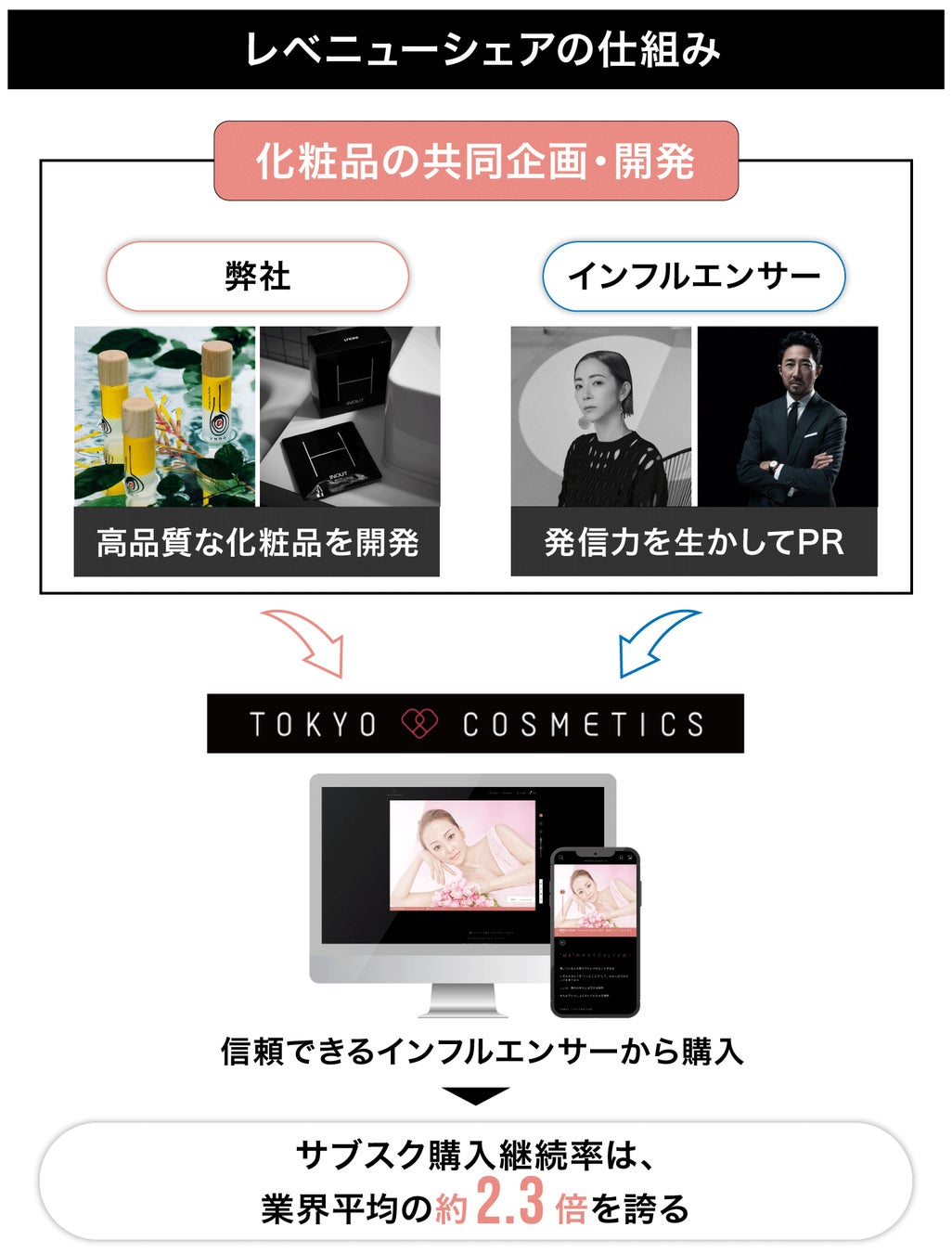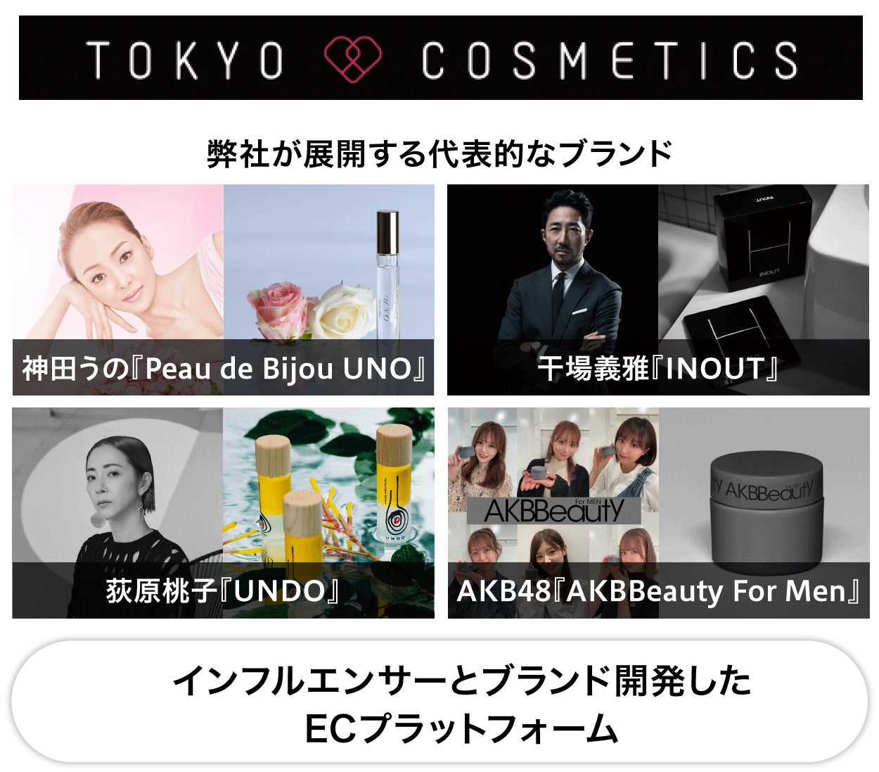 ・事業内容:コスメのオリジナルブランドの開発、独自プラットフォーム「TOKYO COSMETICS」での販売