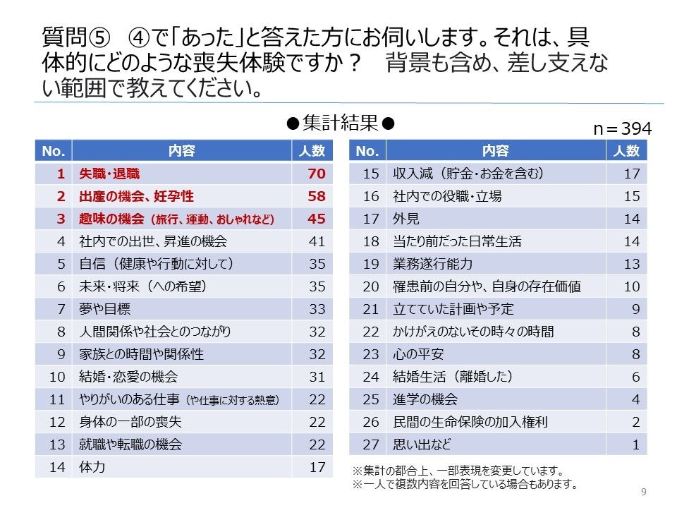※「キャンサーロスト」とは、「がん罹患によって失ったものや機会」を表す、一般社団法人がんチャレンジャーによる造語です。