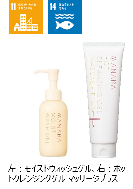 〈モイストウォッシュゲル〉(朝用洗顔料)は、製造過程において湧水(天然温泉水)を使用しており、拭き取り洗顔のため、洗顔時の水も不要であるため節水に寄与することとなっています。