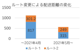 さらに、製品を配送する際のCO2排出量の削減にも取り組んでいます。拠点を介さず直送にすることで、移動距離を短縮する変更が2021年5月にされました。
