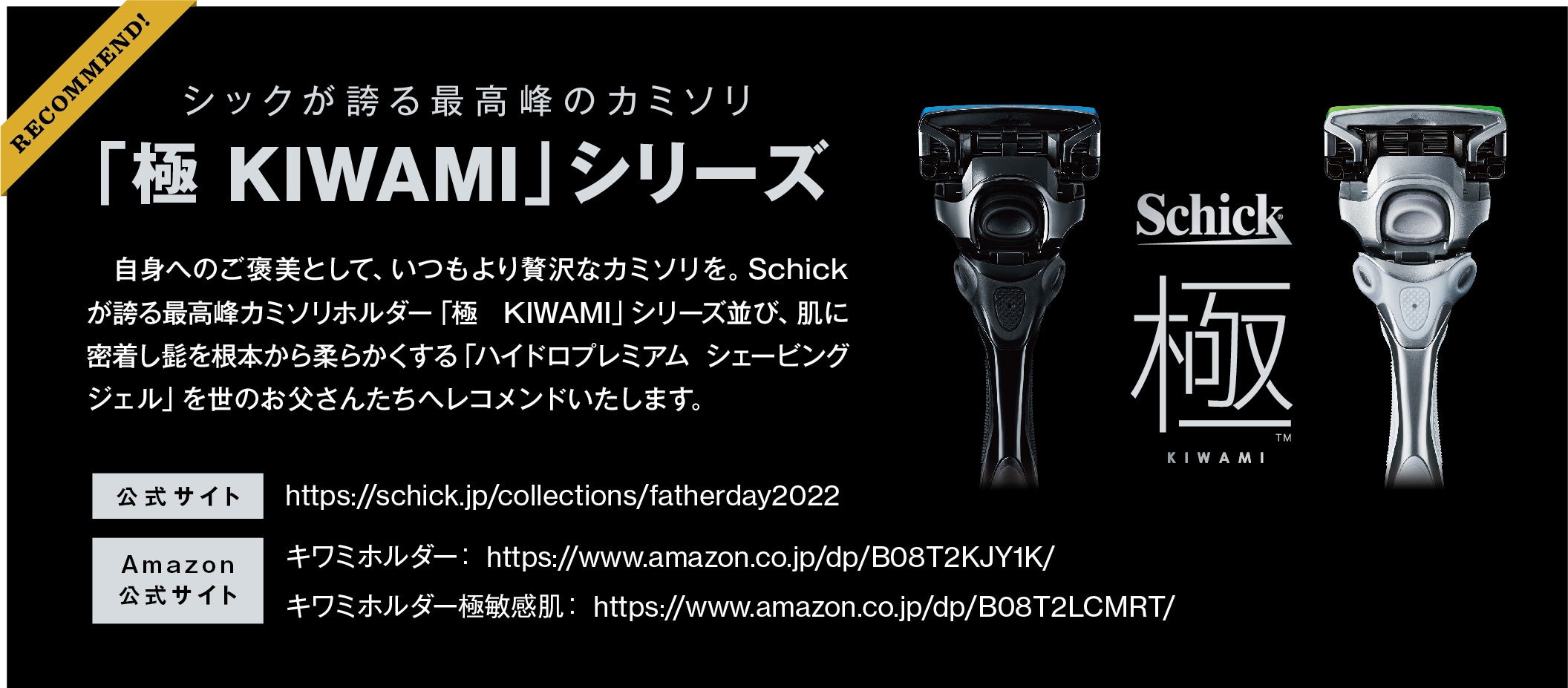 Schickブランドが日本市場に参入した1960年から、シックは日本のユーザーのシェービングを支援してきました。これまでさまざまな日本中のお父さんをサポートしてきたシックだからこそ、いつも頑張っているお父さんのために「もっと父の日を盛り上げていきたい」と考えています。
