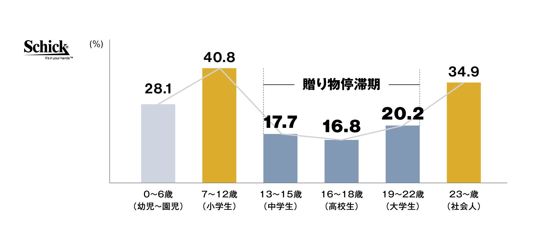 ウェットシェービング国内トップシェア(※1)を誇るシック・ジャパン株式会社(本社:東京都品川区、代表取締役社長:ニコラス パウエル、以下シック)は、6月19日の「父の日」を前に、「子どもからの贈り物」に関する調査を実施しました。本リリースでは、アンケート調査により判明した父の日に「子どもから贈り物をもらえない期間」についての情報や、その期間を「セルフ父の日」で楽しむための情報をお届けします。
