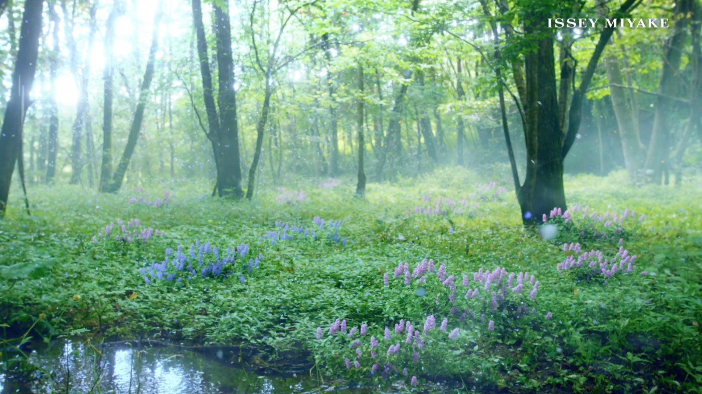 一滴のピュアな水を出発点として2021 年に誕生した「ア ドロップドゥ イッセイ」。続いて本年登場する「ア ドロップドゥイッセイ オードパルファム フレッシュ」が体現するのは、雨の“しずく”が巡る冒険。空から落ちたピュアな雨粒は、草、花ばな、樹木など自然界に存在する様ざまなエレメントに触れ、旅をしながら自然をやさしく揺りうごかすかのように、次々と感覚を呼び覚ますのです。