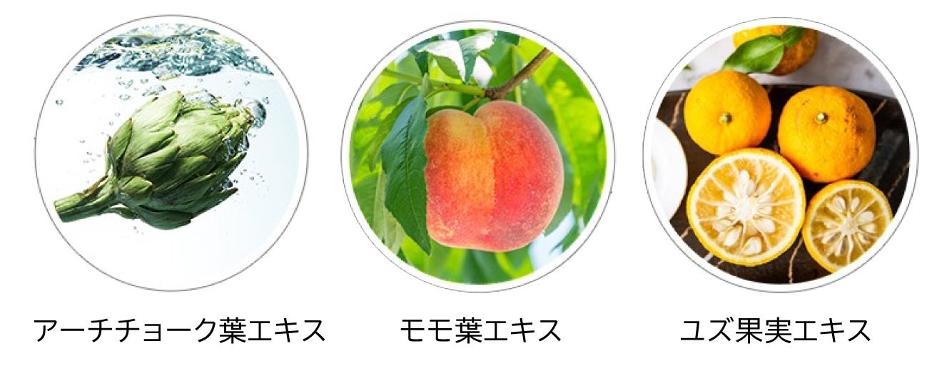 開き毛穴とたるみ毛穴へアプローチするアーチチョーク葉エキスや、バリア機能を高めて保湿するユズ果実エキス、レモンの17倍ものビタミンCを含有するアセロラ、紫外線によるダメージをケアするモモ葉エキスなど、17種の美容成分を配合。