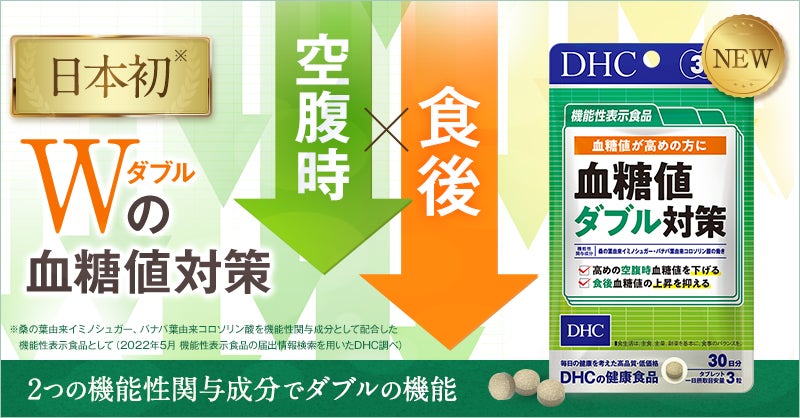 ~日本初(※)!2つの機能性関与成分が、空腹時&食後血糖値にはたらく~2022年6月8日(水)DHCから機能性表示食品「血糖値ダブル対策」新発売のお知らせ