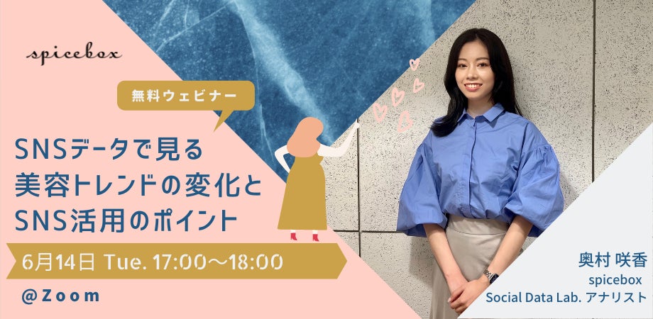 株式会社スパイスボックス(本社:東京都港区、代表取締役社長 田村栄治)は、2022年6月14日(火)に、企業の宣伝・マーケティング担当の方向けに、SNSデータから見る美容業界の変化などを紹介する無料ウェビナー「SNSデータで見る美容トレンドの変化とSNS活用のポイント」を開催いたします。
