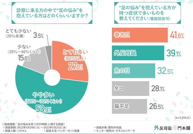 外反母趾専門本舗(https://www.rakuten.co.jp/sincerus/)を運営する株式会社シンケールス(本社所在地:兵庫県明石市、代表取締役:岡村 玲央奈)は、整形外科医を対象に、「足の悩みを持つ方の特徴」に関する調査を実施しました。