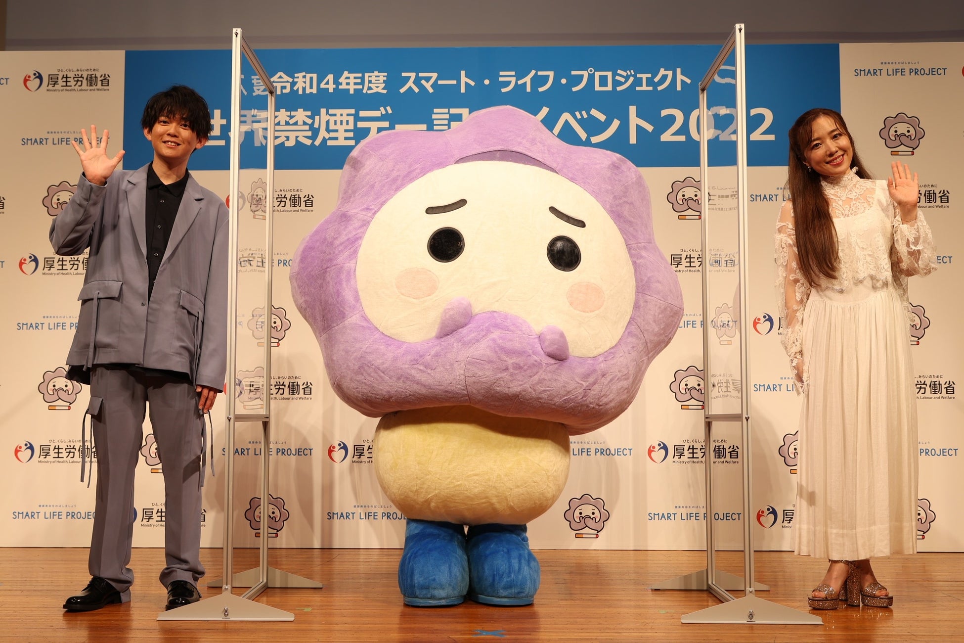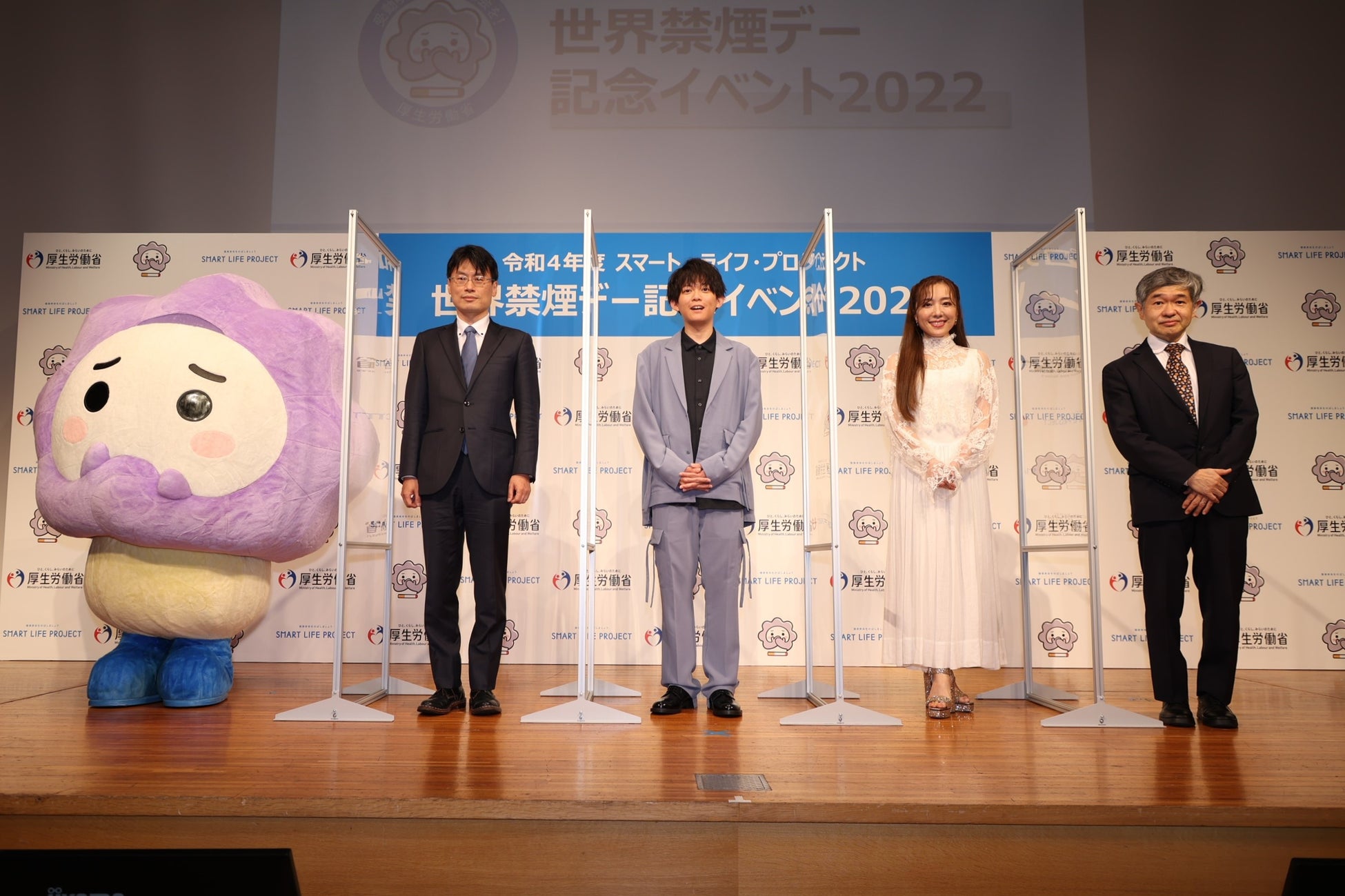 佐々木氏からは、望まない受動喫煙をなくすために原則として屋内禁煙を定めた、改正健康増進法について説明があり、「受動喫煙を減らせるようにアンバサダーの皆さまと(マスコットキャラクターの)けむいモンと共に取り組んでいきたい」と語りました。