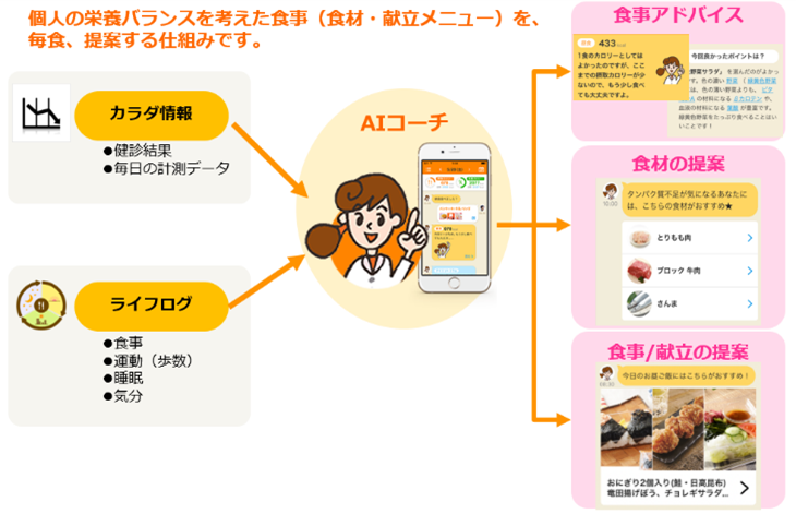 ユーザーが継続してライフログを入力することで、ユーザー一人一人の志向に合わせた精度の高い提案を行うことが可能になります。