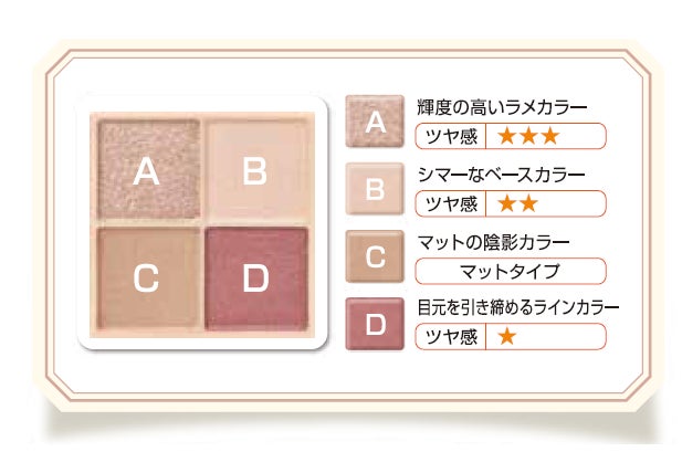 洗練されたベージュにくすみと血色感をプラスし、ベーシックと色っぽさのバランスが取れた絶妙なニュアンスカラーです。パーソナルカラー問わず使いやすい中間色で、目元に自然な深みと血色感を与えます。