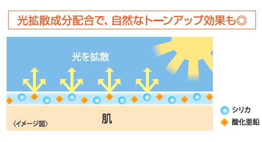 紫外線吸収剤フリーのノンケミカル処方。単品使用の場合、石けんや洗顔料で落とせるのでお肌の負担が気になる時にも使いやすいUV下地です。
