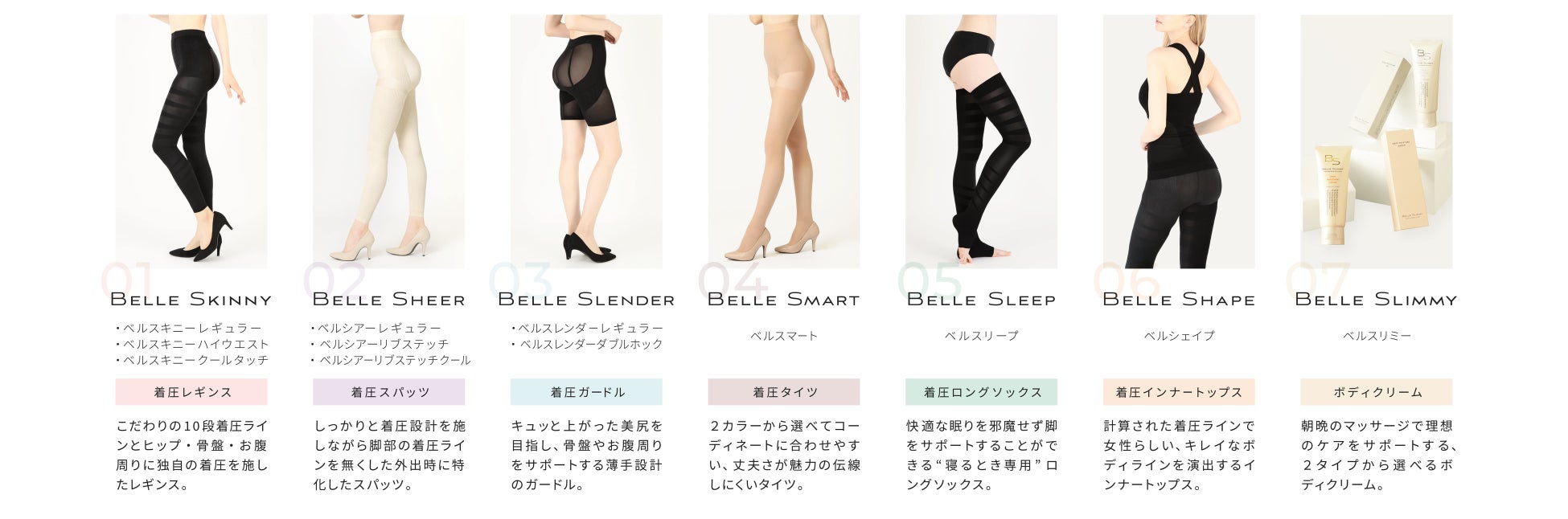 ブランド一覧:BELLE SKINNY/BELLE SHEER/BELLE SLENDER/BELLE SMART/ BELLE SHAPE/BELLE SLEEP/BELLE SHAPE/BELLE SLIMMY