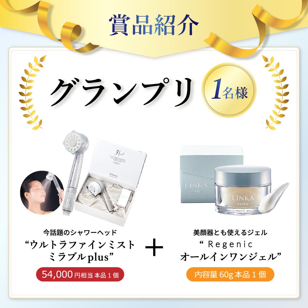 株式会社アイビビッド(本社:東京都小金井市、代表取締役:阿部寛興)は、高機能スキンケア『LINKA esthé Regenicオールインワンジェル』の発売を記念して、Instagramにて「もち肌キャンペーン」を開催いたします。受賞者には、話題のシャワーヘッド「ウルトラファインミスト ミラブルplus」やマルチ複合美顔器、Regenicオールインワンジェルをプレゼント!