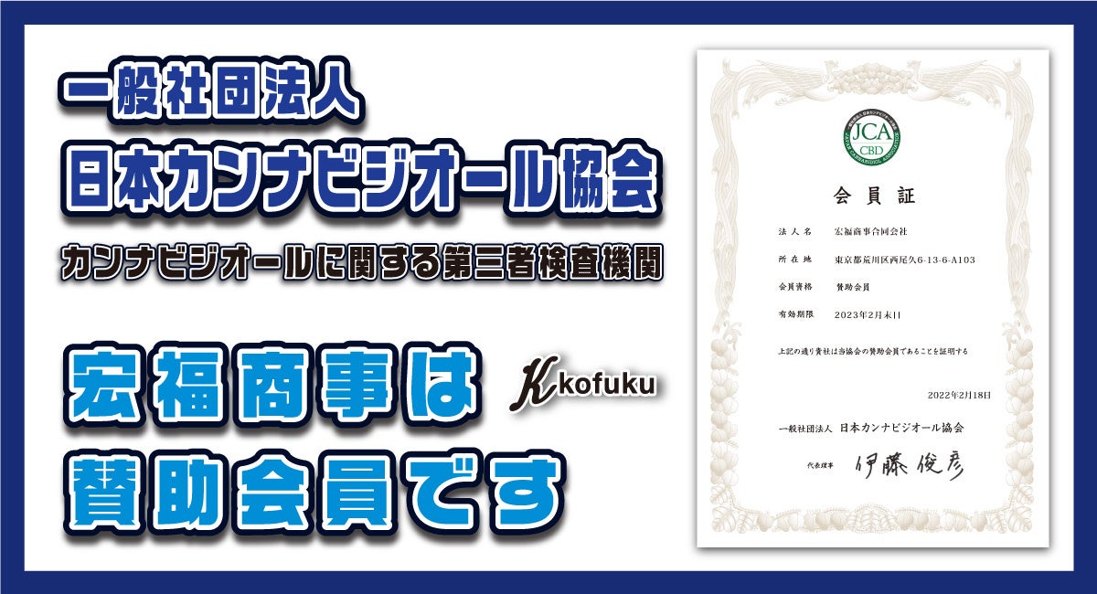 和牛・清酒などの日本食品と衛生用品を中心に貿易事業を営む宏福商事合同会社(東京都荒川区)は今話題の産業用ヘンプである大麻草の成熟した茎や種のみから抽出・製造されたTHCフリーの高濃度カンナビジオール(CBD)を海外の厳選した工場から正規輸入原料販売をしております。また、一般社団法人日本カンナビジオール協会の会員であることをお知らせいたします。
