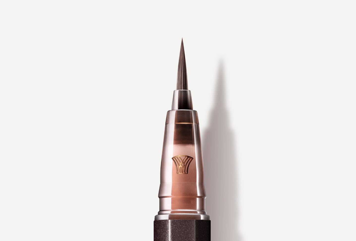 人間工学に基づいて、持ちやすさ、描きやすさを追求したUZU独自の八角形のフォルムはそのままに。「血色感」を象徴する赤みを帯びたゴールドのメタリックな箔押しをあしらい、またブラシカバー部とエンドキャップ部には、透け感を表す別素材を使用しています。