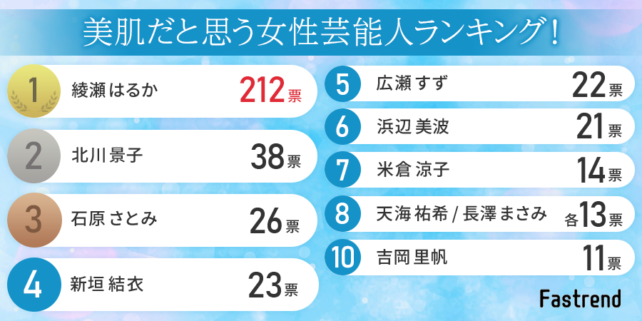 「綾瀬はるか」さんが圧倒的な第1位という結果になりました。
