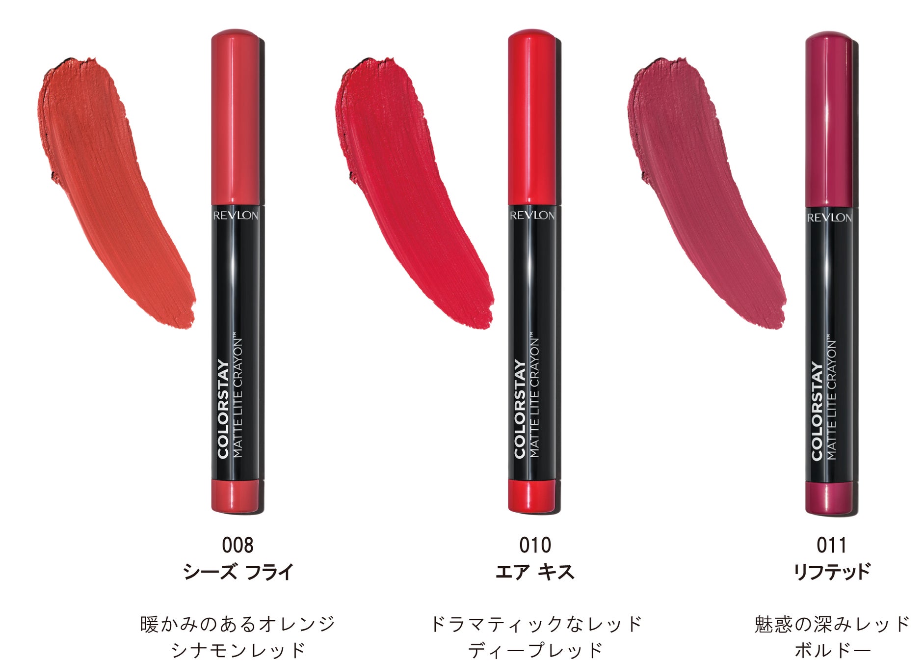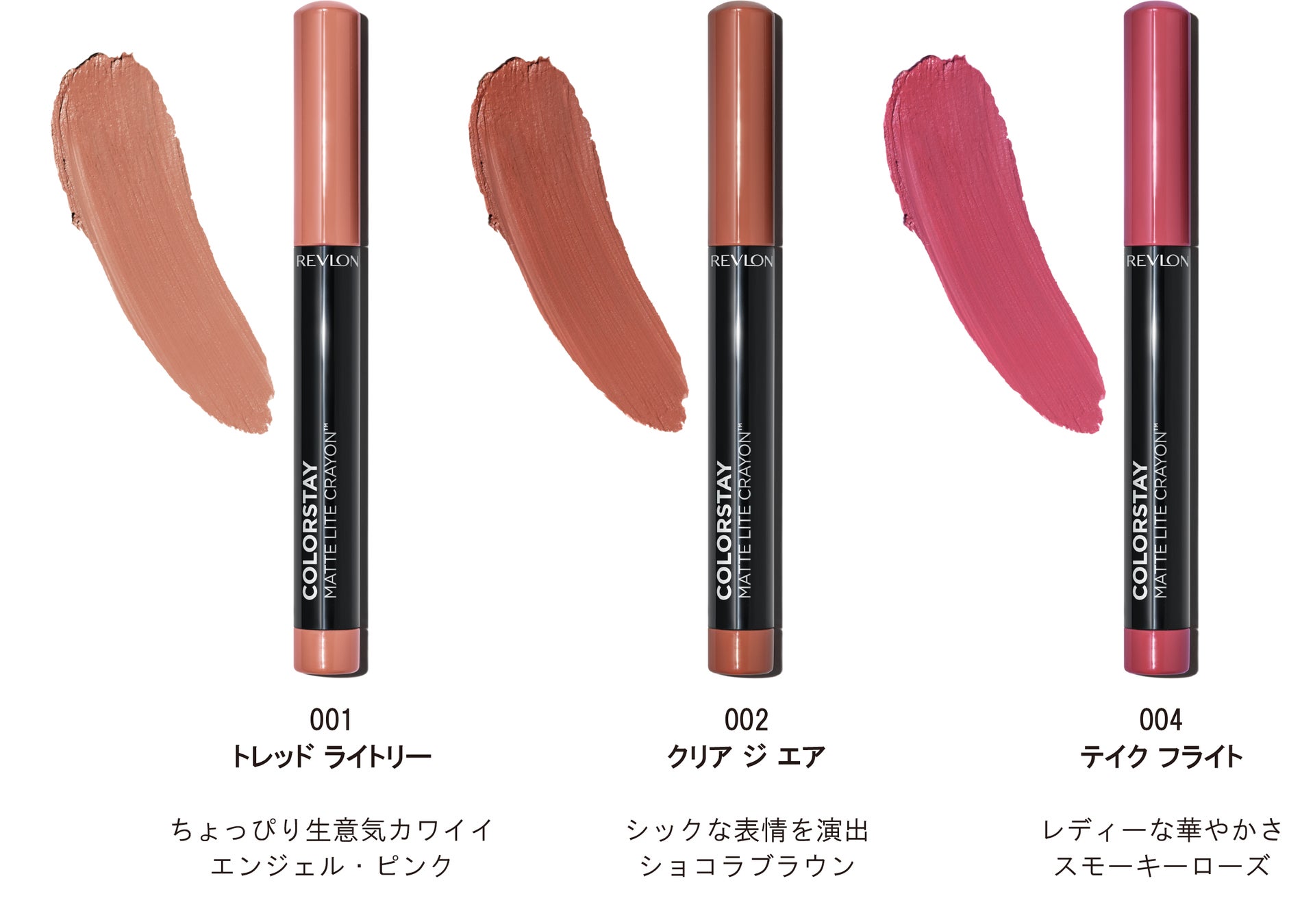レブロン株式会社は、天使の羽のような軽さが人気のクレヨンリップ『レブロン カラーステイ マット ライト クレヨン』 から、新色を追加発売いたします。