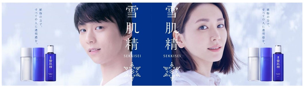この度、『雪肌精』は、国内外、年代・性別を問わないブランドとしてコミュニケーションを刷新します。新し いキービジュアルでは、新垣さんと羽生さんのお二人が、『雪肌精』が叶える雪のような透明感を表現し、性別や 年齢を問わず使え、自然のめぐみで作られているブランドであることを伝えます。