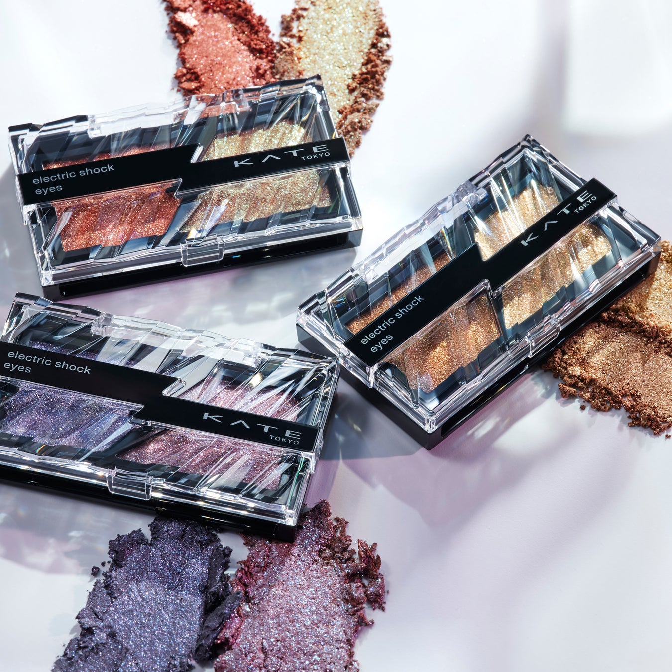 KATEから、質感の異なるふたつの輝きで火花がクラッシュしたような発光感をもたらす“電撃発光シャドウ”、「エレクトリックショックアイズ」が登場!2022年1月22日(土)発売。