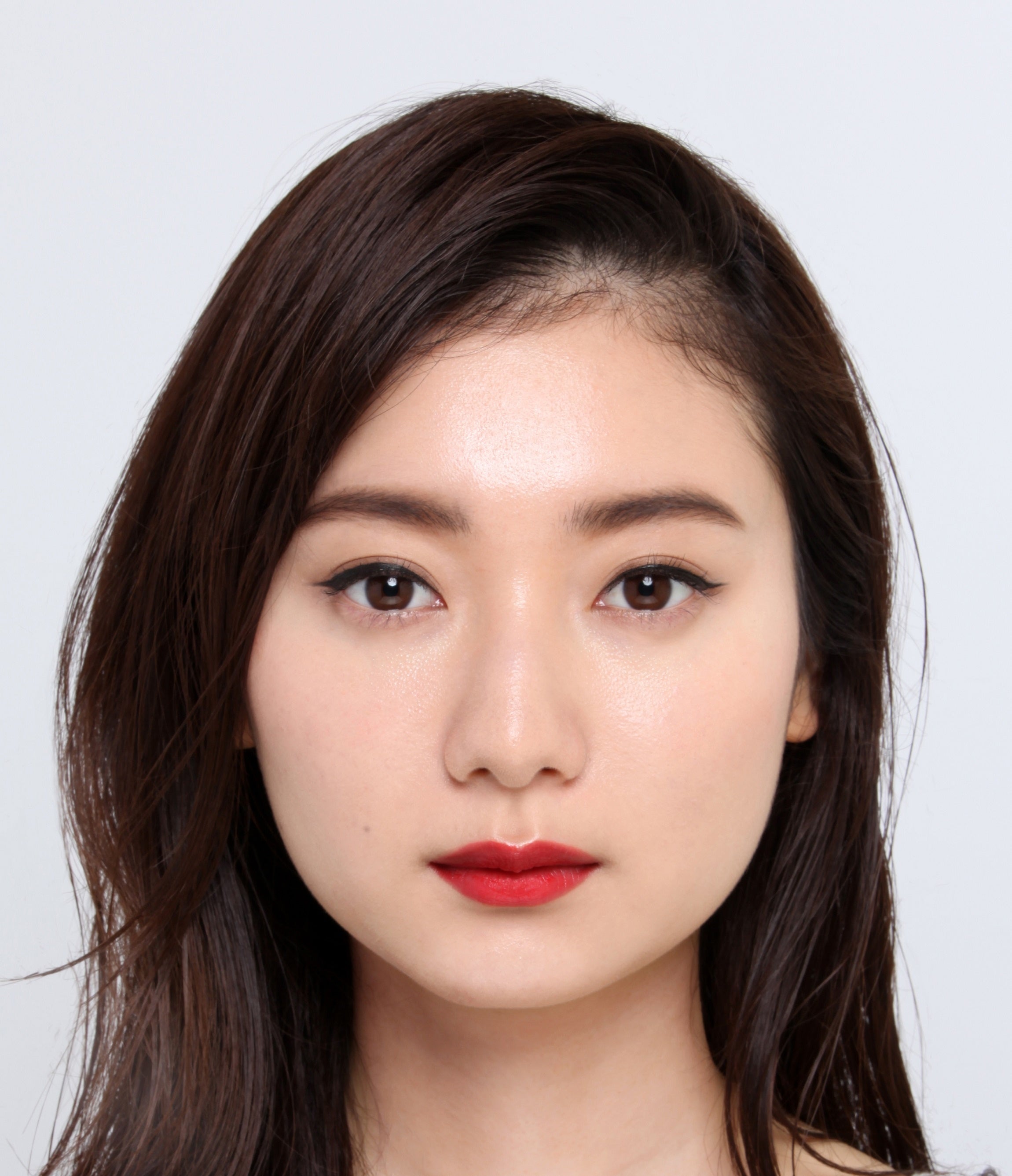 ・ヘアスタイル:前髪は長めでやや厚みがある。やわらかくニュアンス感のある髪型。