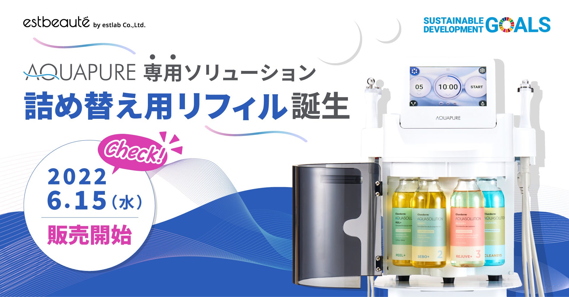 すべての人に「美」と「健康」の提供を目指す総合美容メーカーの株式会社エストラボ(本社:東京都新宿区、代表取締役社長:久保瞳)は、自社が取扱うマルチフェイシャルケアマシン”AQUAPURE(アクアピュア)”の専用ソリューションにおいて、本日より詰め替え用のリフィルパッケージを販売開始致しましたので、ご案内申し上げます。