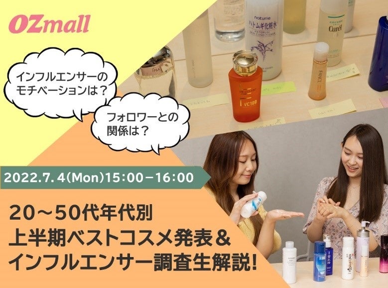 会員390万人の女性サイト「OZmall(オズモール)」(https://www.ozmall.co.jp) を運営するスターツ出版株式会社(本社:東京都、代表取締役社長:菊地修一)は、2022年7月4日(月)に、「上半期ベストコスメ発表&インフルエンサー調査」オンラインセミナーを開催、セミナー参加者を募集いたします。