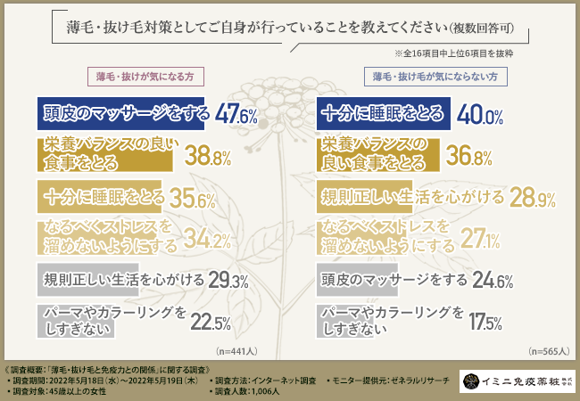 - 【免疫力を意識したケアをしていますか?】現状の薄毛・抜け毛対策