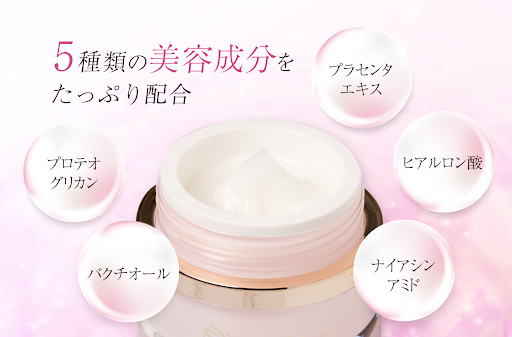 その他の成分にも「プラセンタ」「ヒアルロン酸」「バクチオール」「ナイアシンアミド」「プロテオグリカン」「エクソソーム」など、一つ一つがメインとなり得る成分をふんだんに配合した、エイジングケアに特化した独自処方の新商品となります。