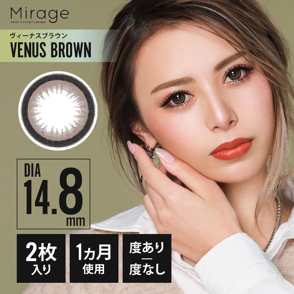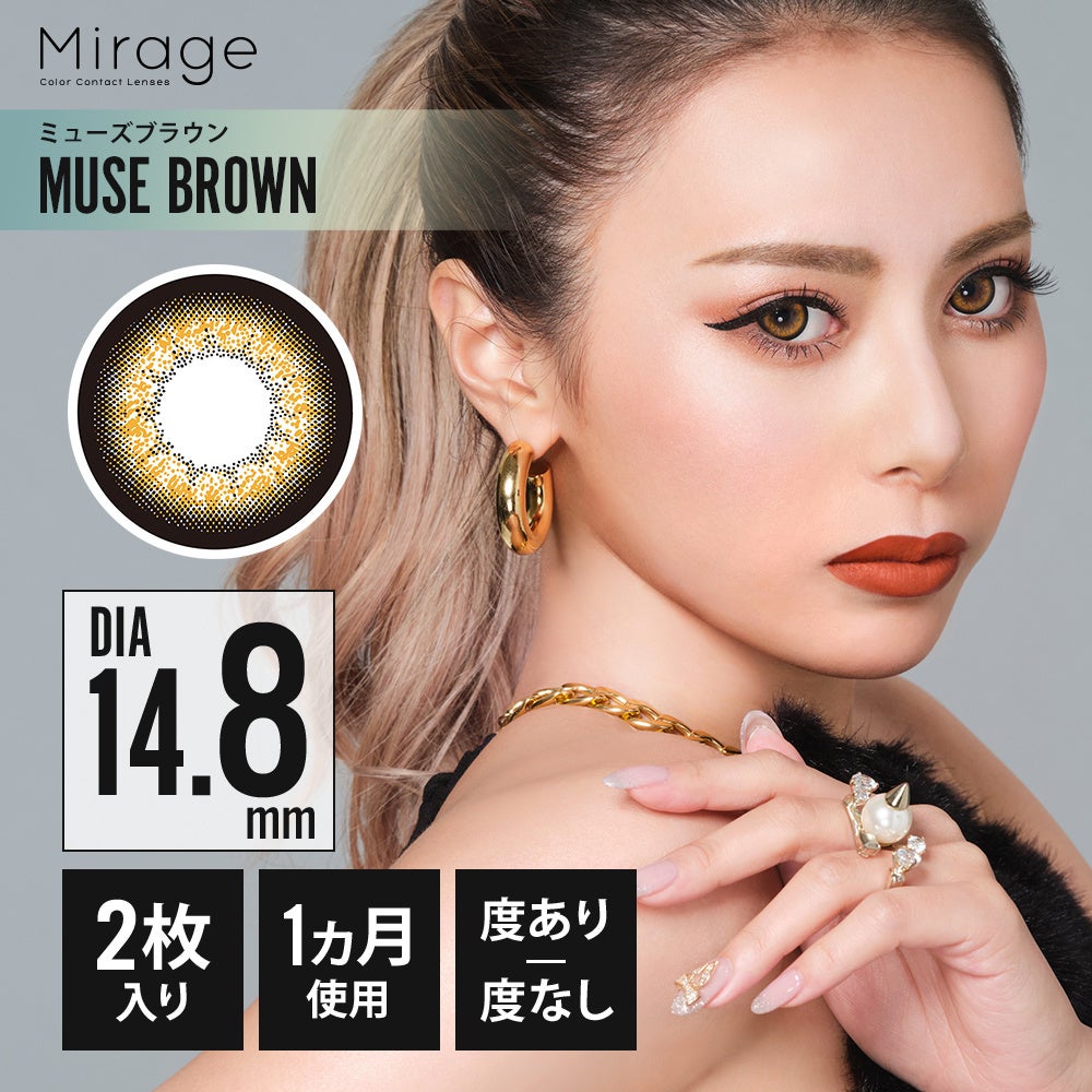 『Mirage(ミラージュ)』は、瞳を強調することで女性の魅力を格上げするカラーコンタクトブランドです。しっかりフチと高発色のカラーのレンズが印象的な瞳を作り出し、かわいい、きれい、セクシーといった女性ならではの魅力を輝かせます。