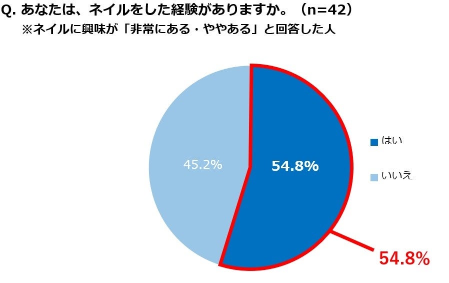 • ネイルに興味のある人の半数以上が、既にネイル経験あり!