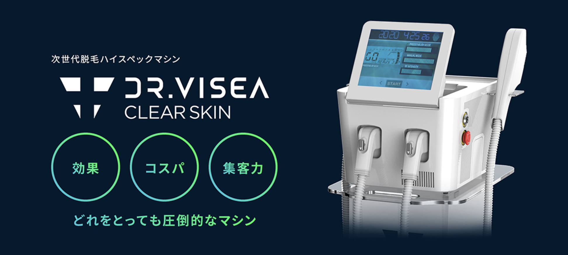 業務用エステ機器販売メーカーDr.Visea(ドクタービセア)が開発・販売している業務用脱毛機『クリアスキンネオ』。これまで1,500台以上の販売実績を誇る『クリアスキンネオ』は、脱毛研究を専門とする大学教授監修のもと作られた安全性が高い脱毛機となっています。