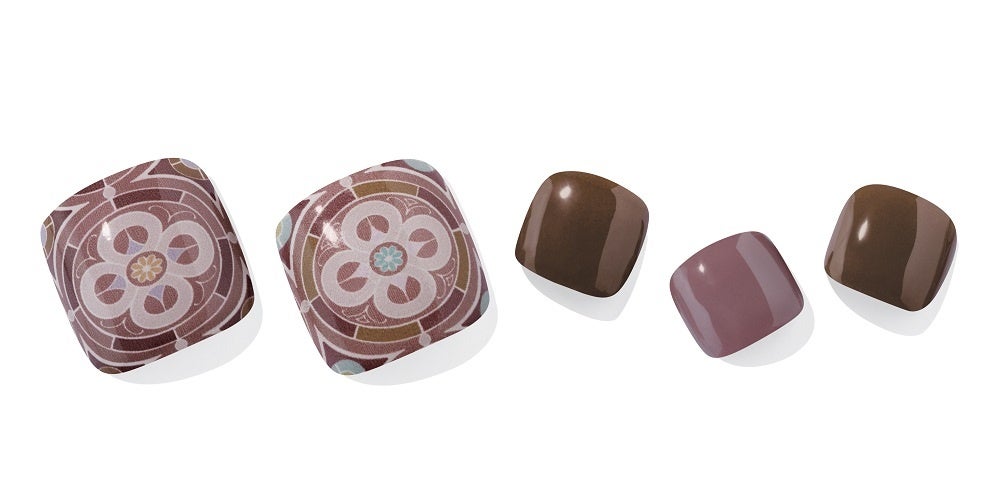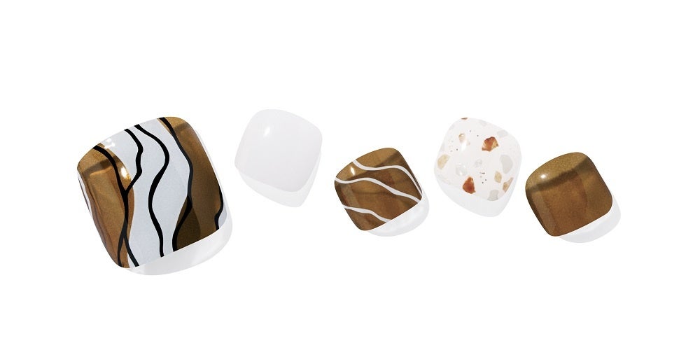 異国の街のタイルやモザイクアートをイメージした、どこかエキゾチックなニュアンスが魅力的なペディ。同系色のブラウンサンダルや、ピュアホワイトのサンダルがベストマッチ。これから生まれるたくさんの夏の思い出を、とびきり鮮やかにHappyに彩ります。1660円
