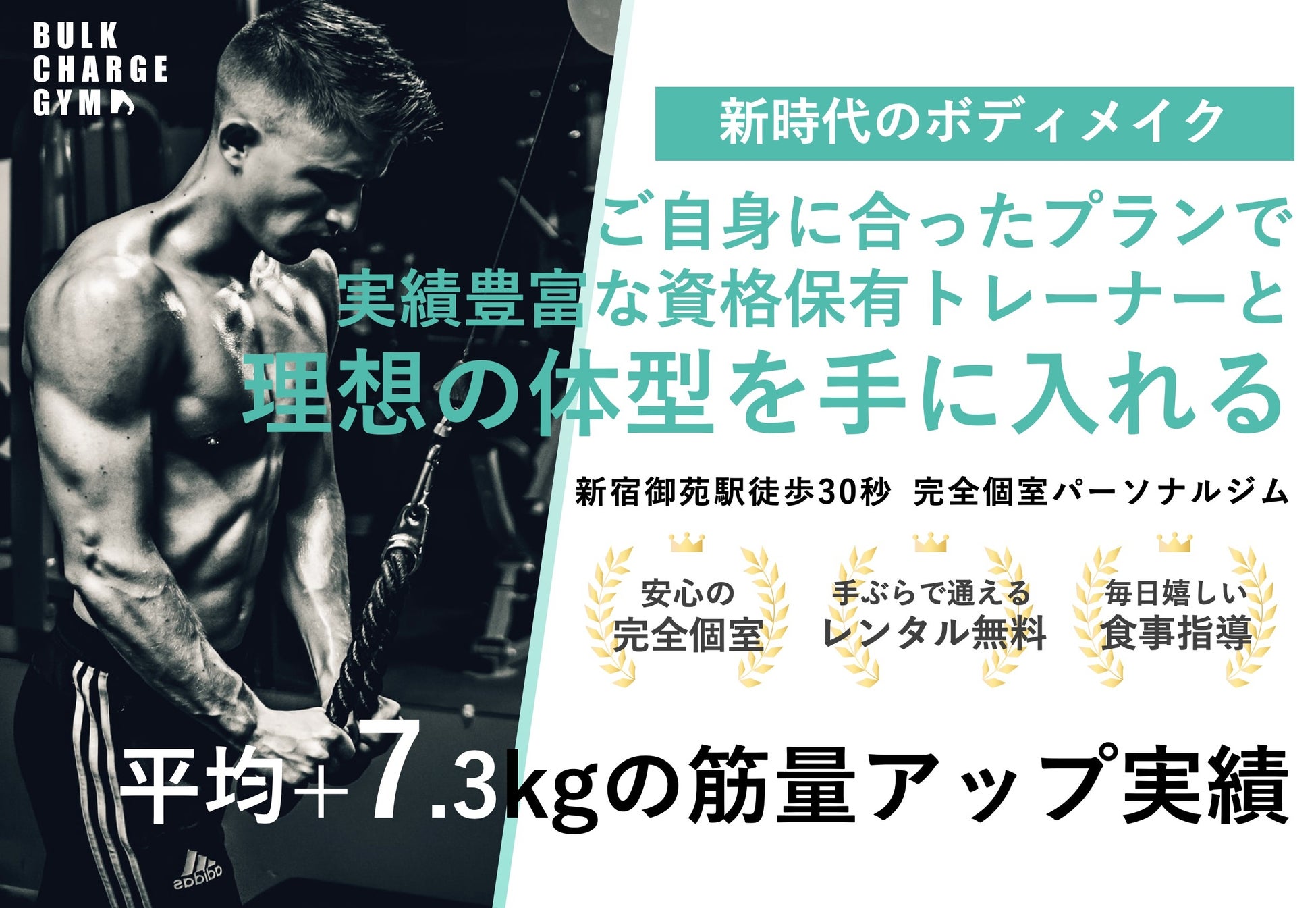 BULK CHARGE(バルクチャージ)を運営するBULK CHARGE株式会社(東京都新宿区新宿2-8-18 第一バーディートライビル9階、代表取締役 谷澤直紀)は東京メトロ丸ノ内線・新宿御苑前駅から徒歩30秒にあるパーソナルトレーニングジムでございます。