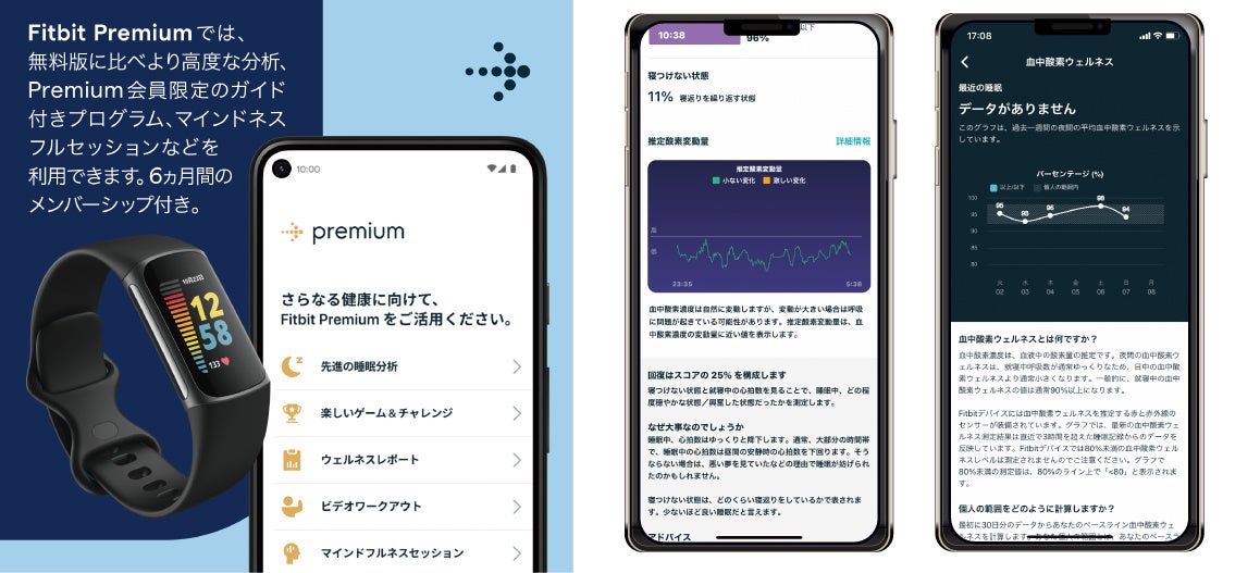 *Fitbit PremiumとはFitbitの有料会員サービスです。Charge 5は6ヶ月間のメンバーシップ付き。