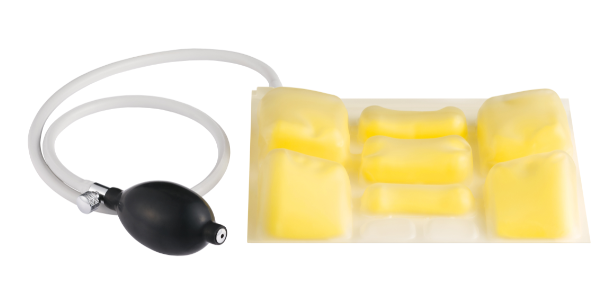 独立した大小7個の「ウレタンフォーム入りエアーセル」に、付属のポンプで空気を出し入れすることにより、無段階調整ができ、首すじをサポートします。首すじと枕のすき間を埋めて密着性を高めます。