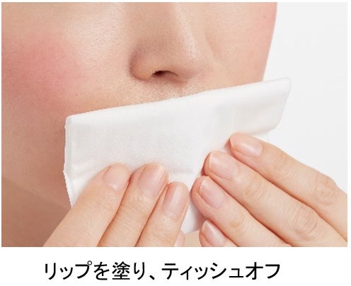 リップを全体に塗ったあとティッシュオフをし、もう一度重ねます。ティントタイプなど、マスクにつきにくいリップを選ぶこともおすすめです。