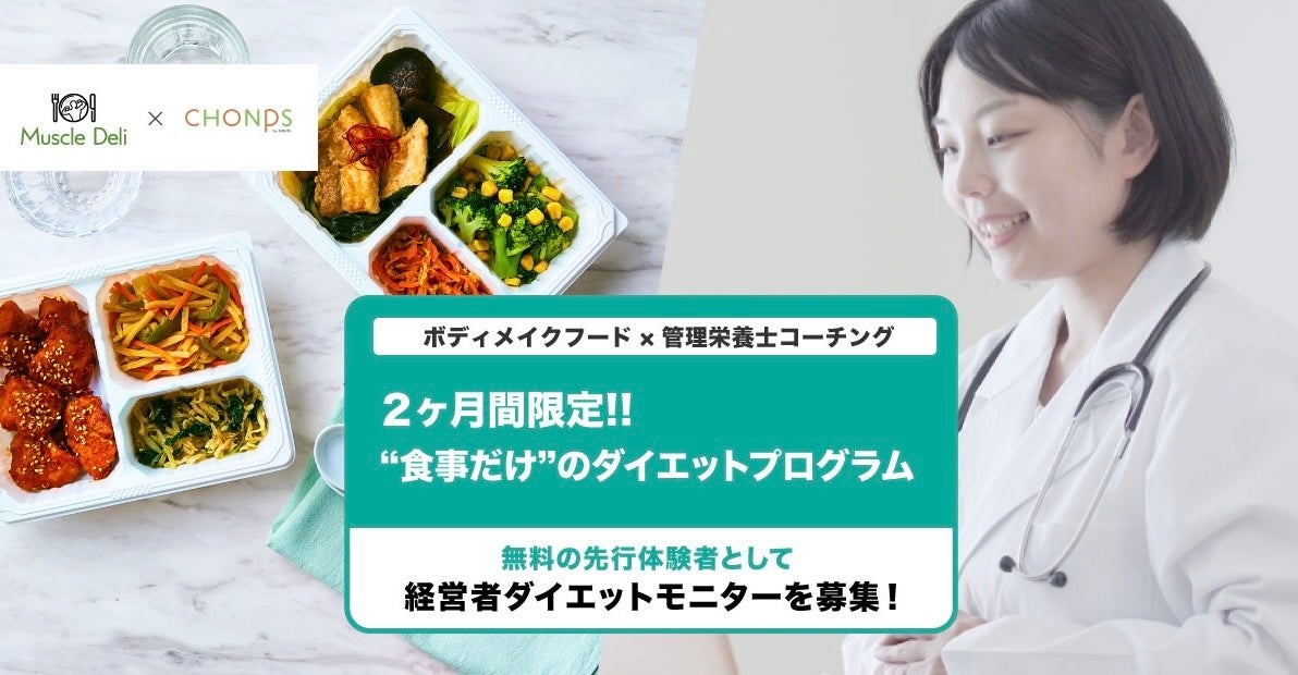 CHONPSとマッスルデリ、経営者を対象とした「食事だけのダイエットプログラム」の先行モニターを募集