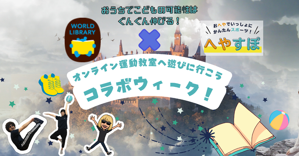 そんなお声をうかがってきました。そこで、「絵本でこどもの想像力や国際感覚を磨くワールドライブラリー」と、「運動でこどもの集中力や自己肯定感を育むオンライン運動教室へやすぽ」が協業することでおうちでもぐんぐんこどもが育つ環境、また新たなことに挑戦する機会を提供したい、そんな思いでこの企画が実現しました。