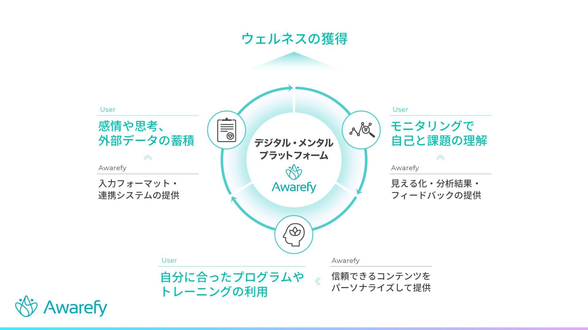 Hakali は、「心の健康を支えるデジタル・メンタル・プラットフォームを実現する」をミッションに、Awarefy の企画・開発・運営を行っています。今後、Awarefy を通じてユーザーに価値を提供するべく、アプリの機能拡充にとどまらず、さまざまな事業展開を行ってまいります。