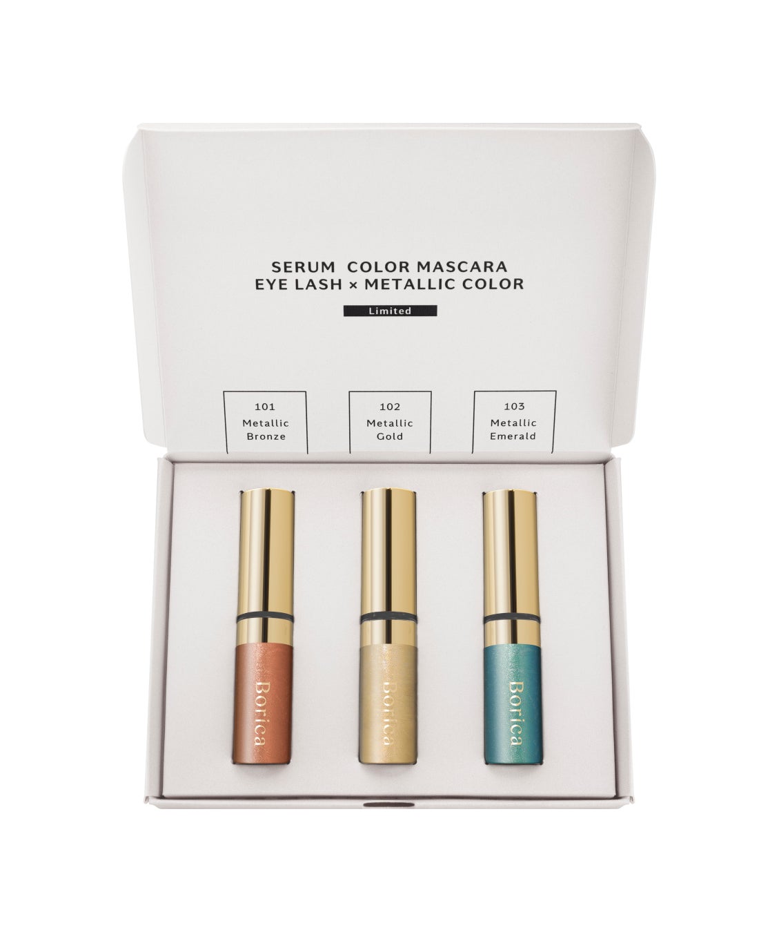 【初回発売分が3日で完売】高発色なメタリックカラーが映える、Borica美容液カラーマスカラ スペシャルボックスの予約販売を再開します。
