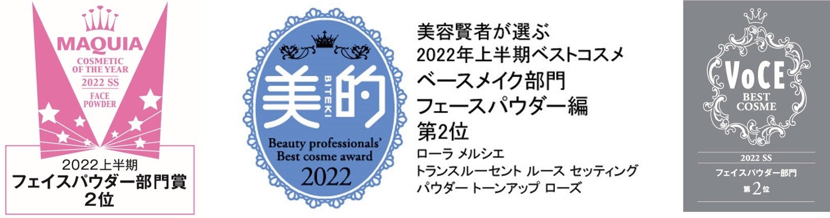 NY発のメイクアップアーティストブランド「ローラ メルシエ」から2022年上半期に発売された新商品「トランスルーセント ルース セッティング パウダー トーンアップ ローズ」「リップグラッセ ハイドレーティング バームグロス」、「キャビアスティック アイカラー」の新色が美容ジャーナリストやメイクアップアーティストなど美容賢者から高い評価をいただき、本日発売の「美的」 「MAQUIA」 「VOCE」8月号にて多数のベストコスメを受賞いたしました。