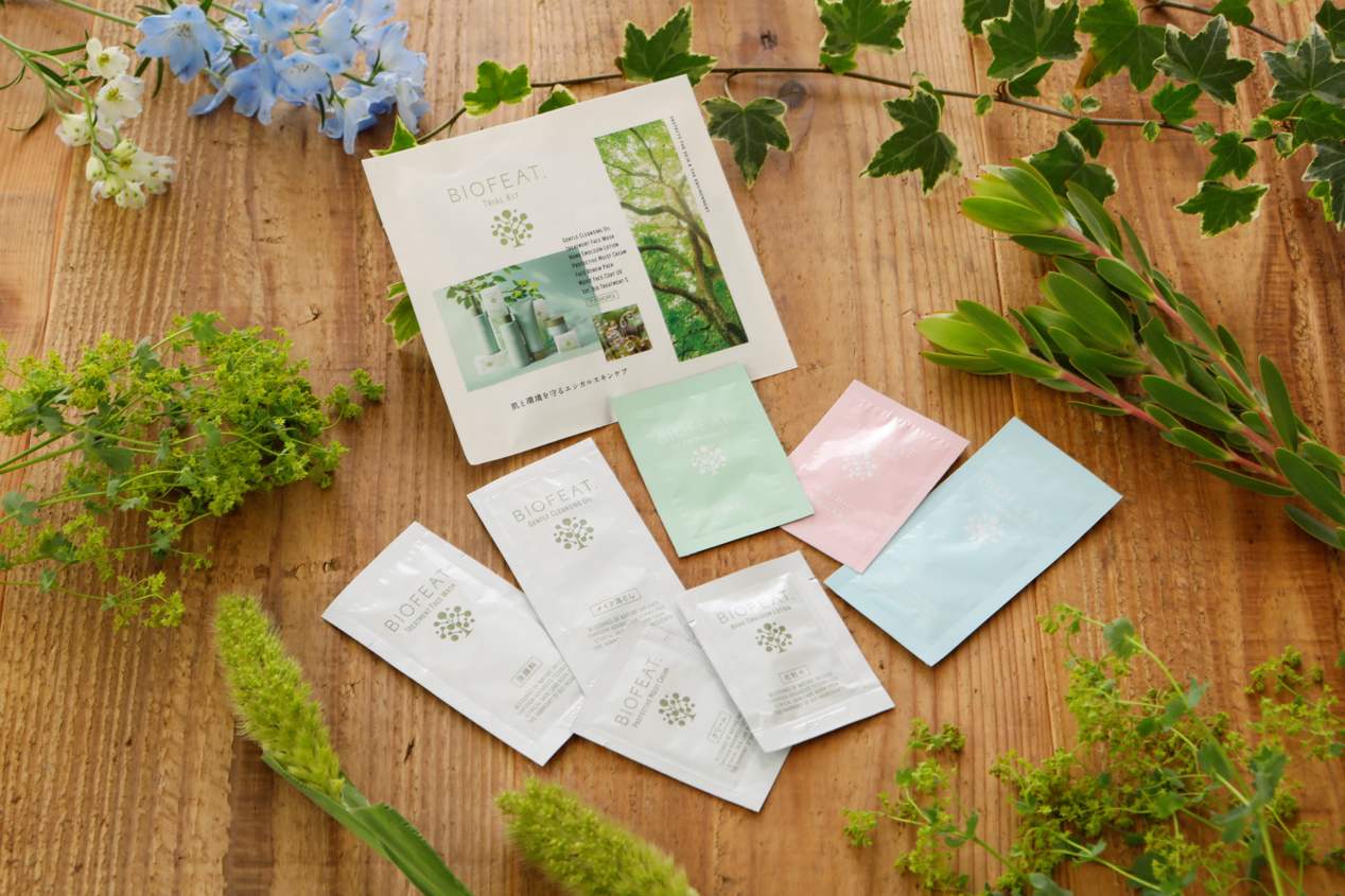 日本製紙グループの日本製紙パピリア株式会社(本社:東京都千代田区、代表取締役社長:三宅純生、以下「当社」)は、㈱ファンケルラボとコラボレーションして開発したエシカルスキンケアブランド「BIOFEAT.」シリーズの4アイテムに加えて、新たに「1st.バイオトリートメントS」、「モイストフェイスコートUV」、「フェイスリニューパック」の新製品3アイテムを当社公式ECサイト(https://papylia.jp/) 及び「楽天市場」(https://www.rakuten.co.jp/biofeat-onlineshop/)にて、7月1日から発売します。また同日から、新製品も加えた全7アイテムの無料トライアルキット(サンプル)の出荷も開始します。