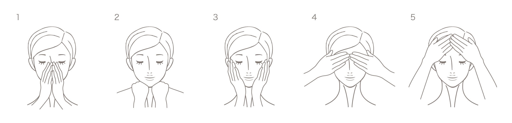 ように大きく息を吸います。 その後、指に力を入れずに優しく撫でるように顔全体に塗布します。